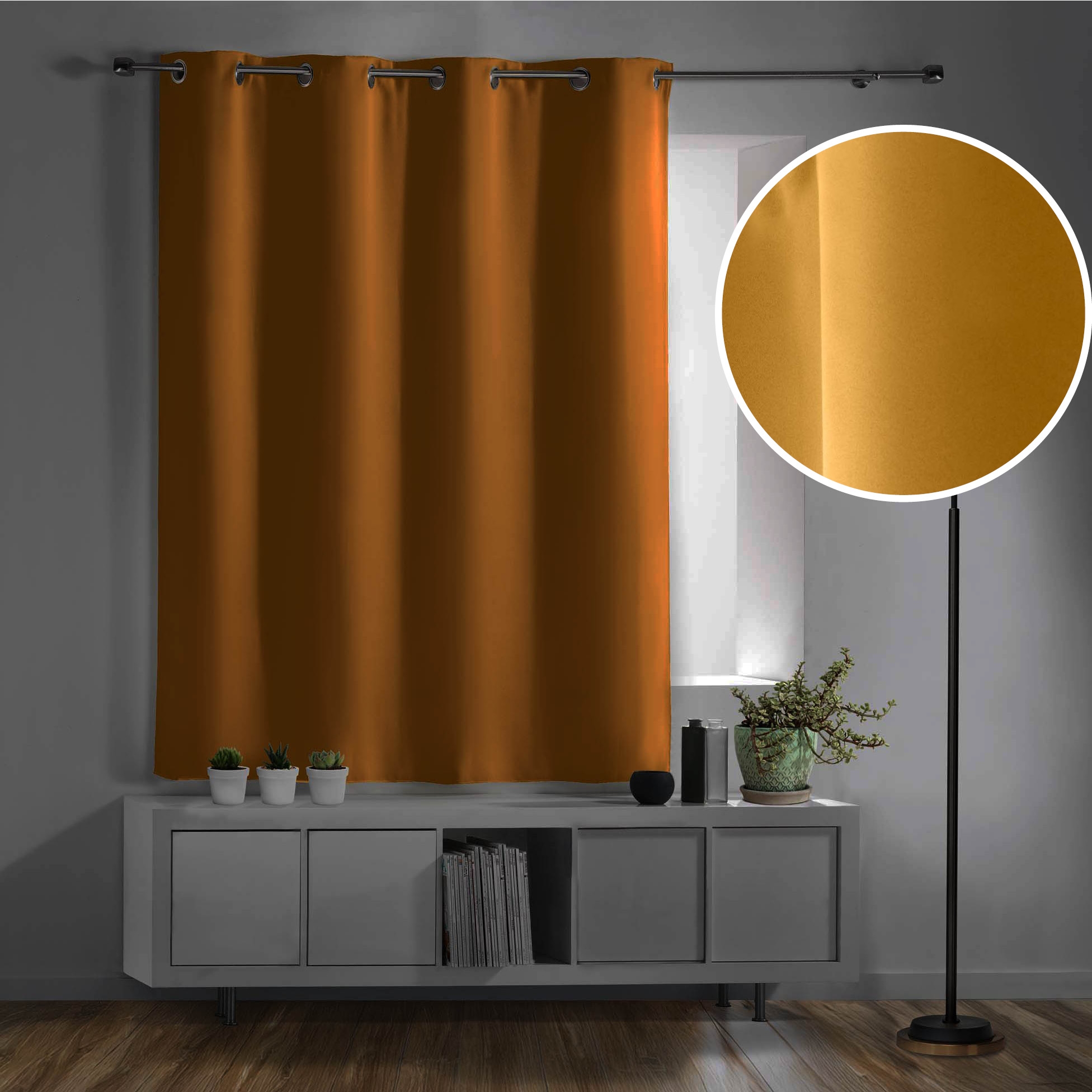 Rideau occultant à œillets 135 x 180 cm – Uni Curry – Petite hauteur