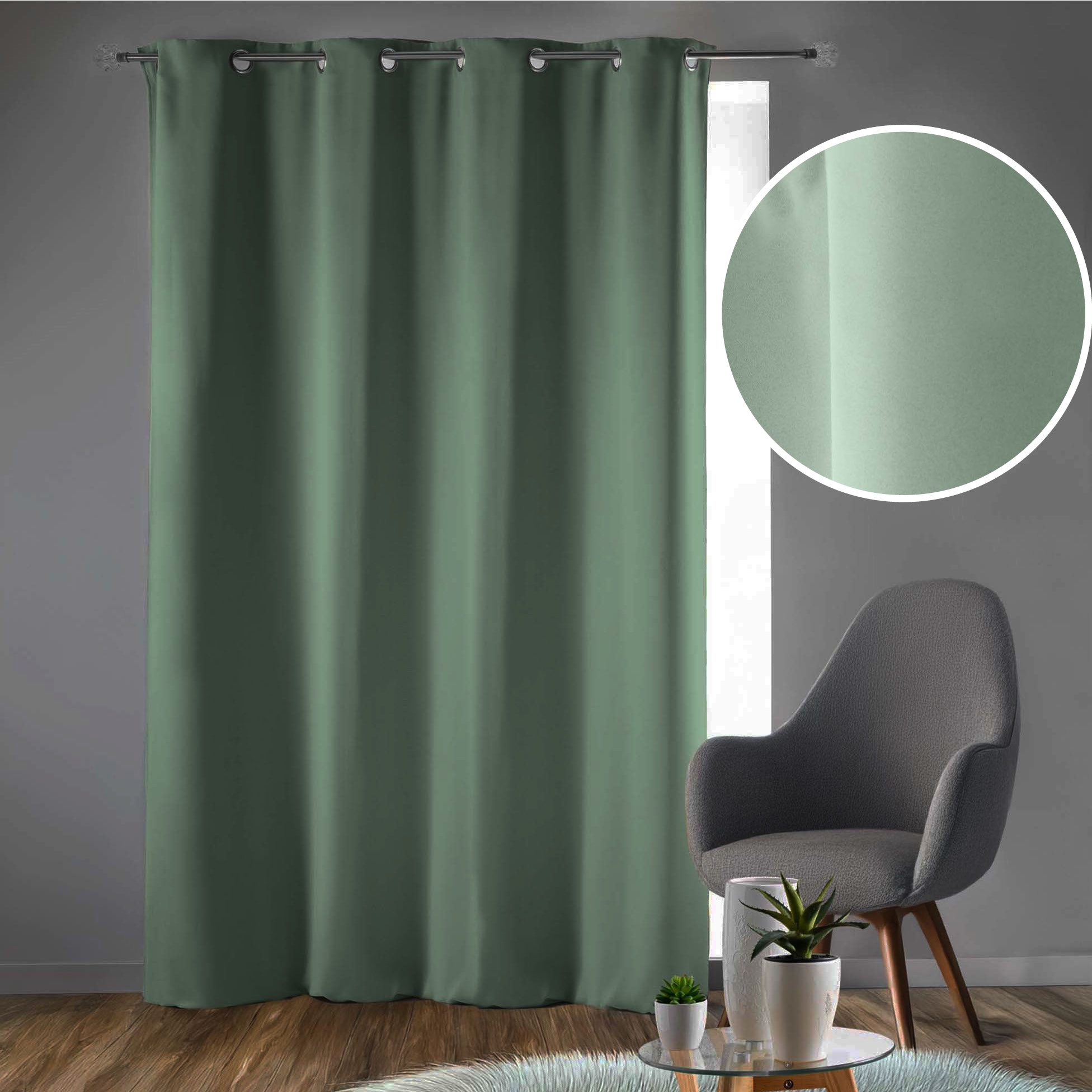 Rideau Occultant Grande Hauteur 135 x 280 cm – Uni Sauge – À Œillets