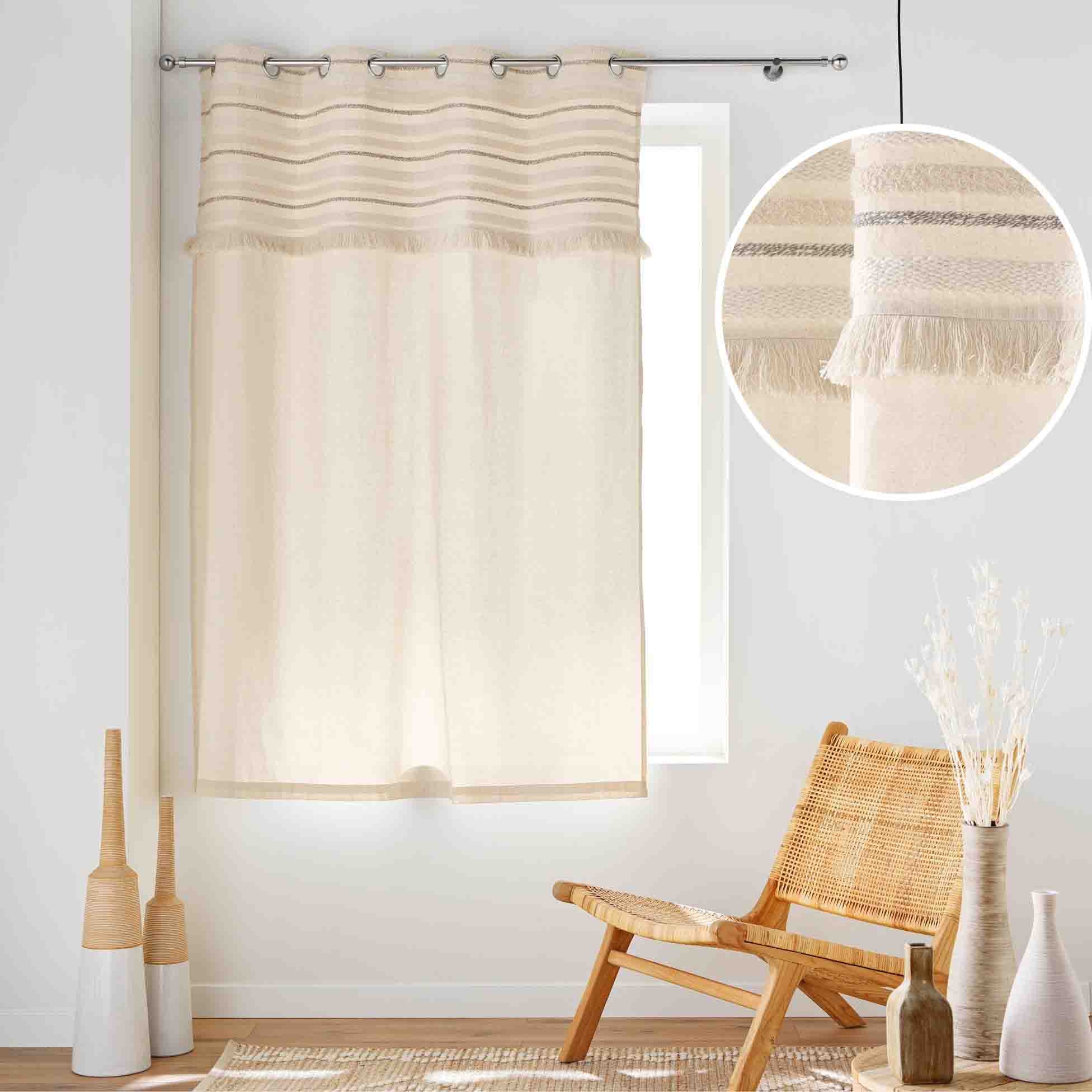 Rideau Petite Hauteur à Œillets 140 x 180 cm – Coton Uni + Top Tissé à Franges – Atlas Naturel