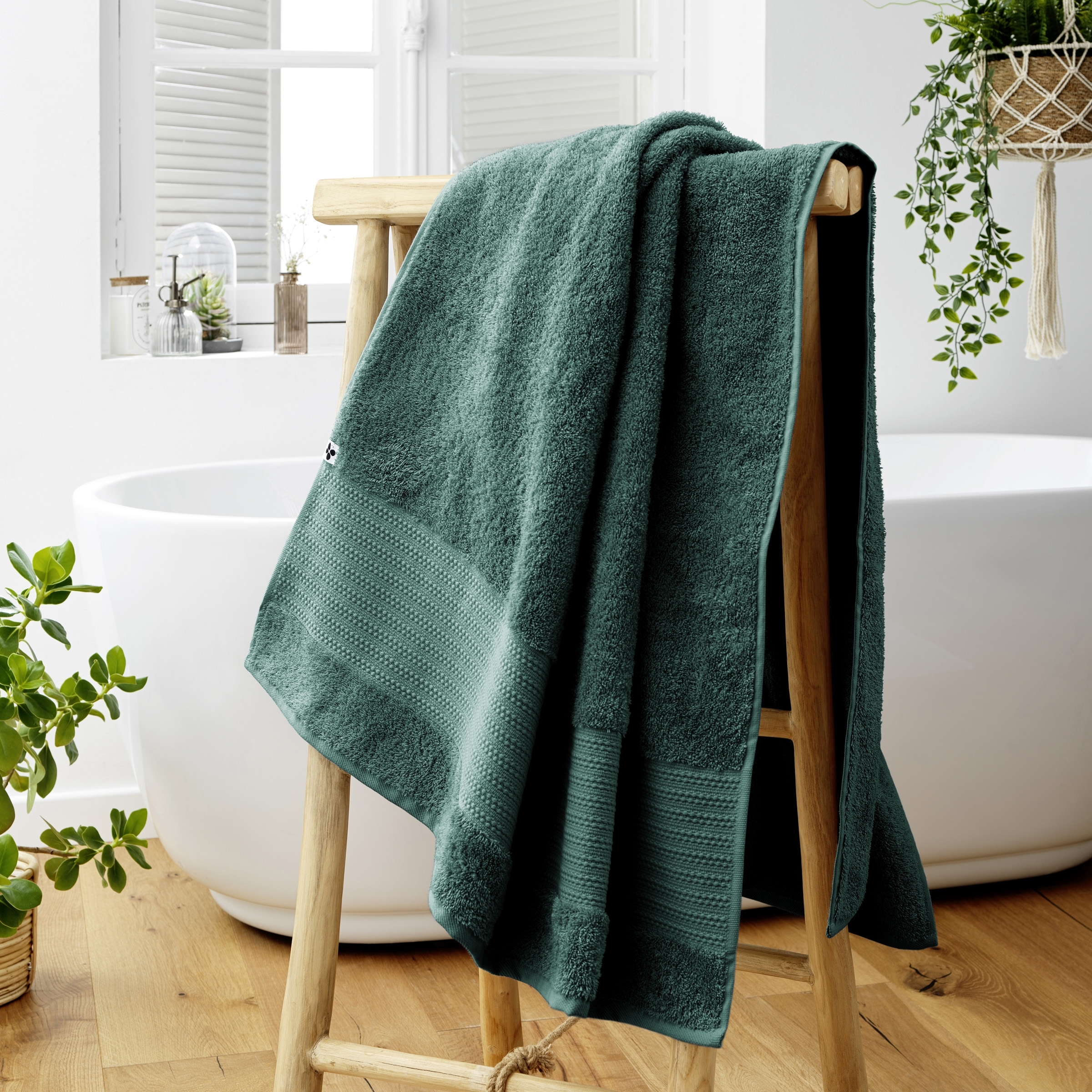 Drap de Bain 90 x 150 cm – Coton Épais 600 g/m² – Éponge Unie – Garance Emeraude