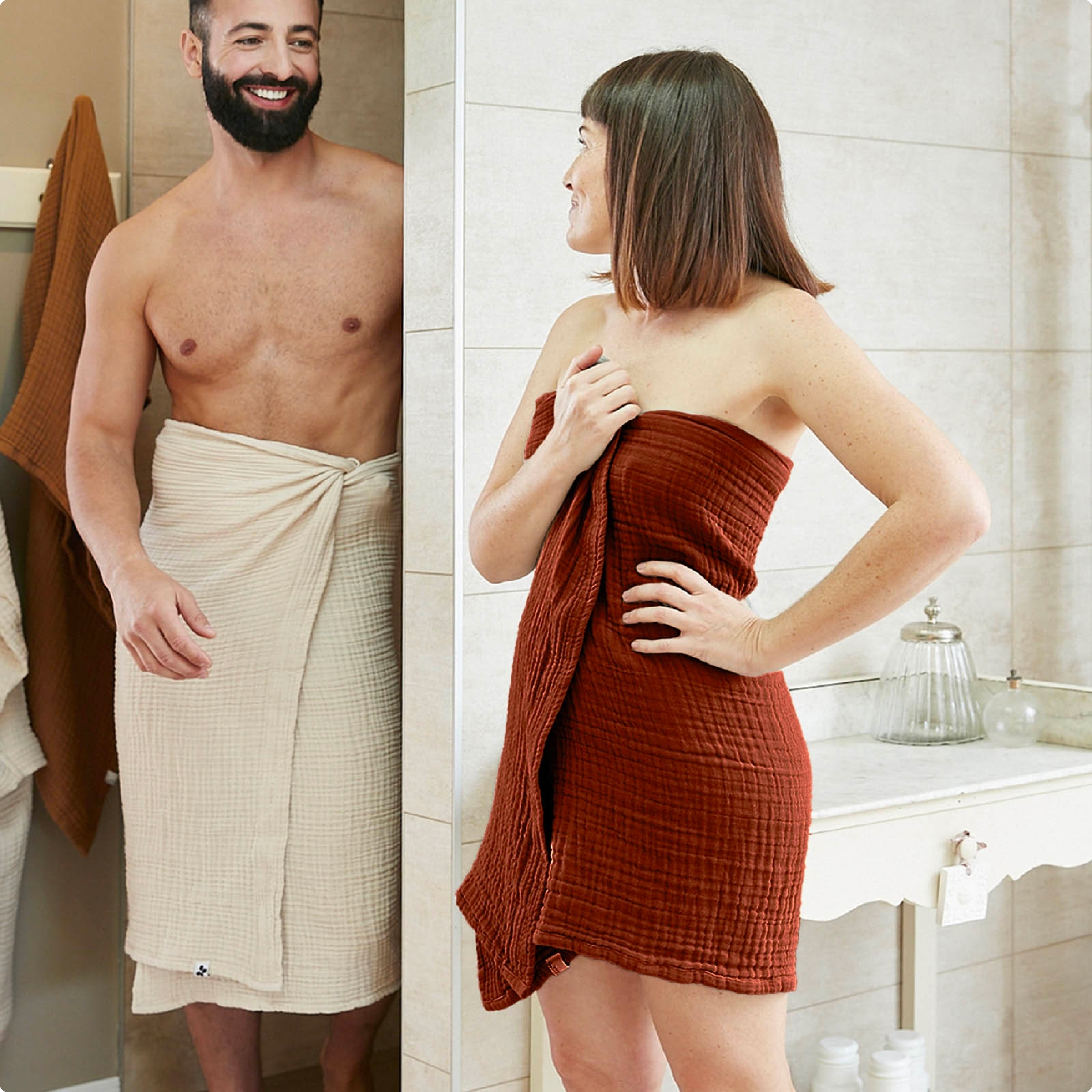 Drap de Douche Gaïa 70 x 130 cm – Gaze de Coton Unie Pampa