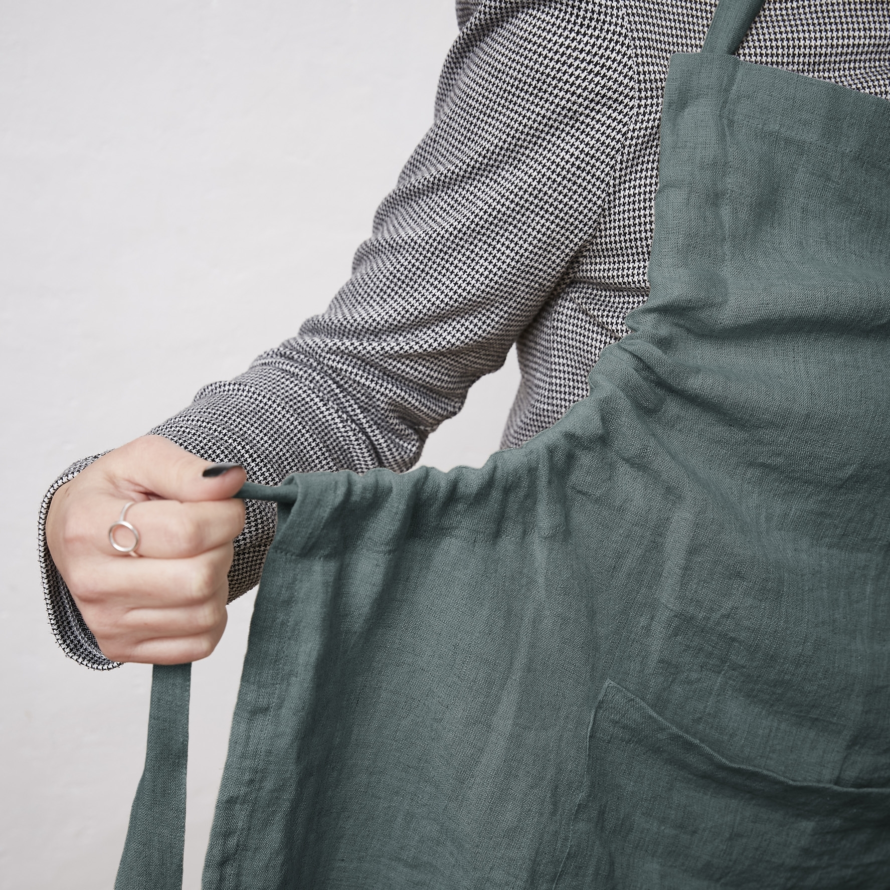 Le tablier Soline Gris foncé en pur lin lavé. Toute la finesse du lin lavé. A la fois élégant et tendance pour un style bohème chic !