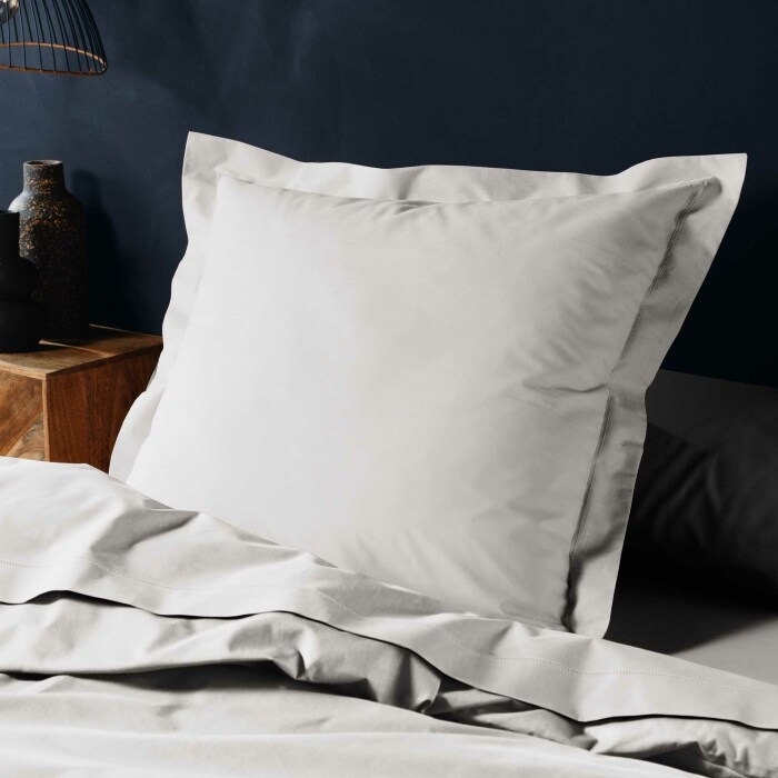 Taie d'oreiller 63 x 63 cm uni 57 fils lina +point bourdon Blanc