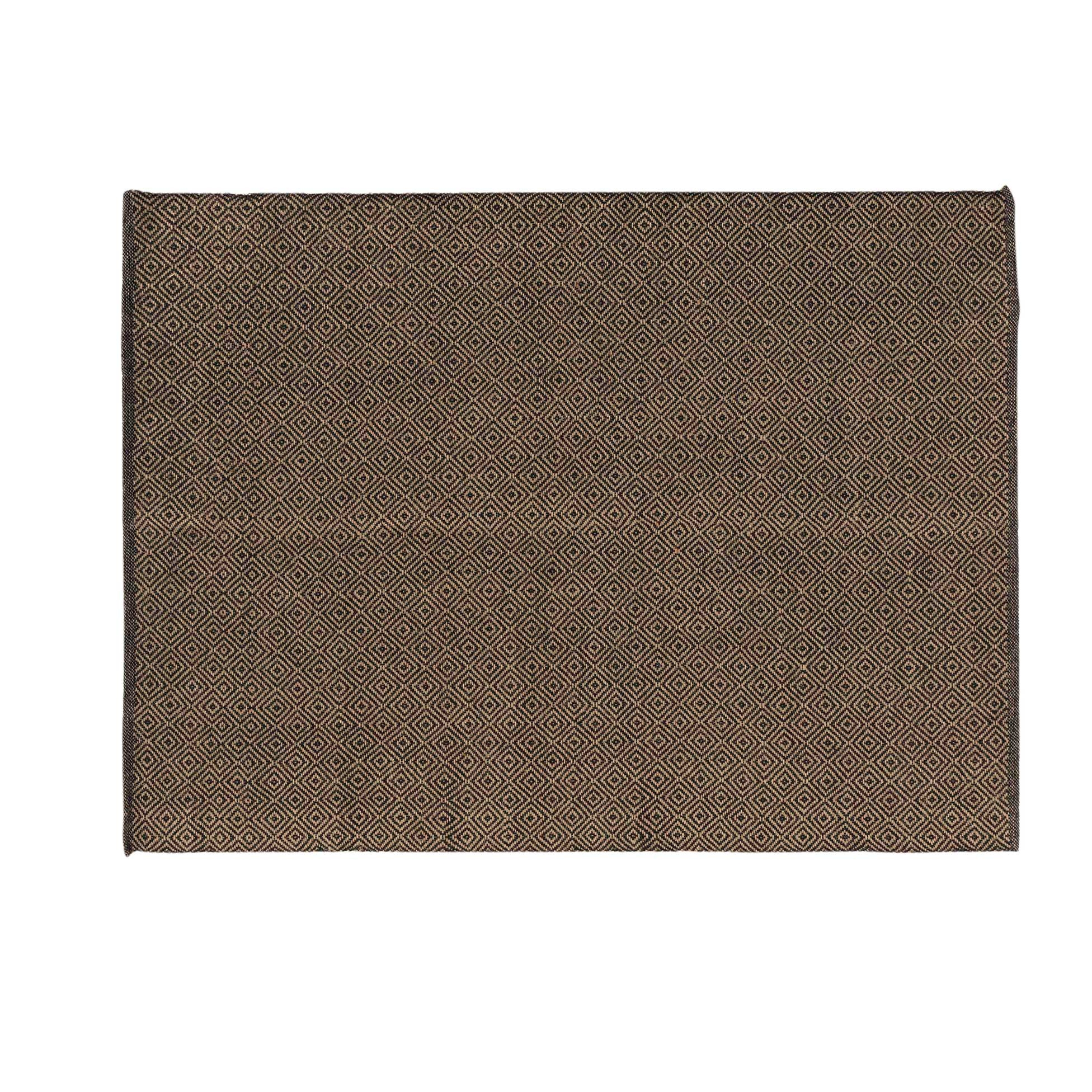Tapis rectangle 120 x 170 cm – Jute et coton – Modèle Livio Noir – Motif losanges