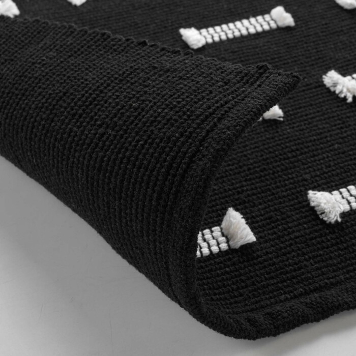 Tapis rectangle 50 x 80 cm coton tisse uni+fils coupes juline Noir