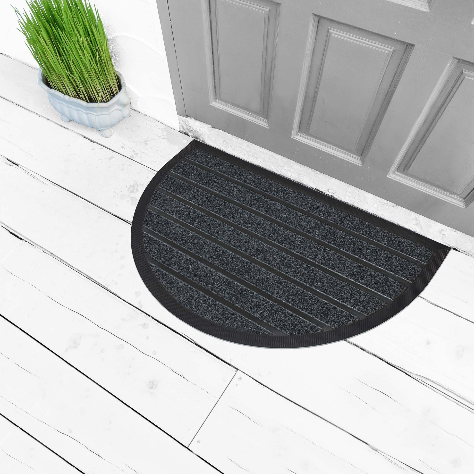 Tapis d'entree demi-lune 45 x 75 cm pvc grattoir marco Gris