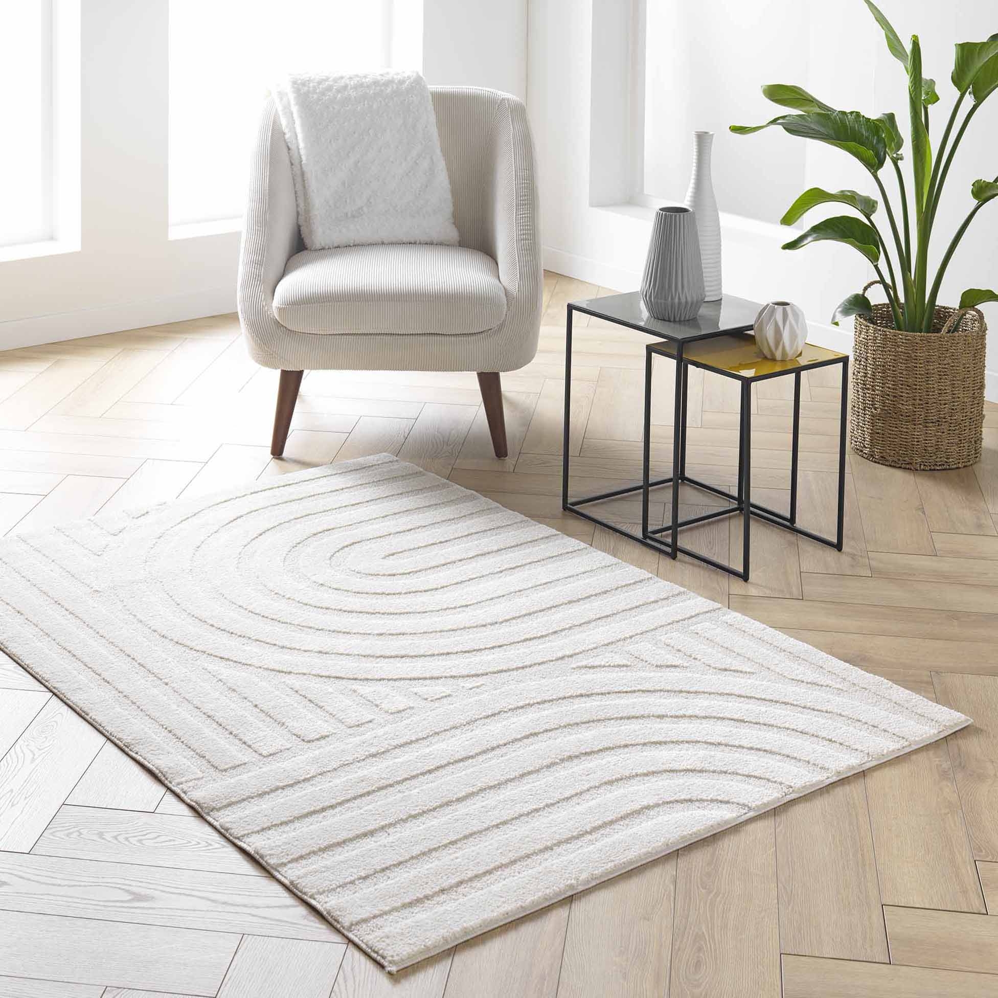 Tapis rectangle 120 x 170 cm – Uni relief – Modèle Maximus – Coloris ivoire