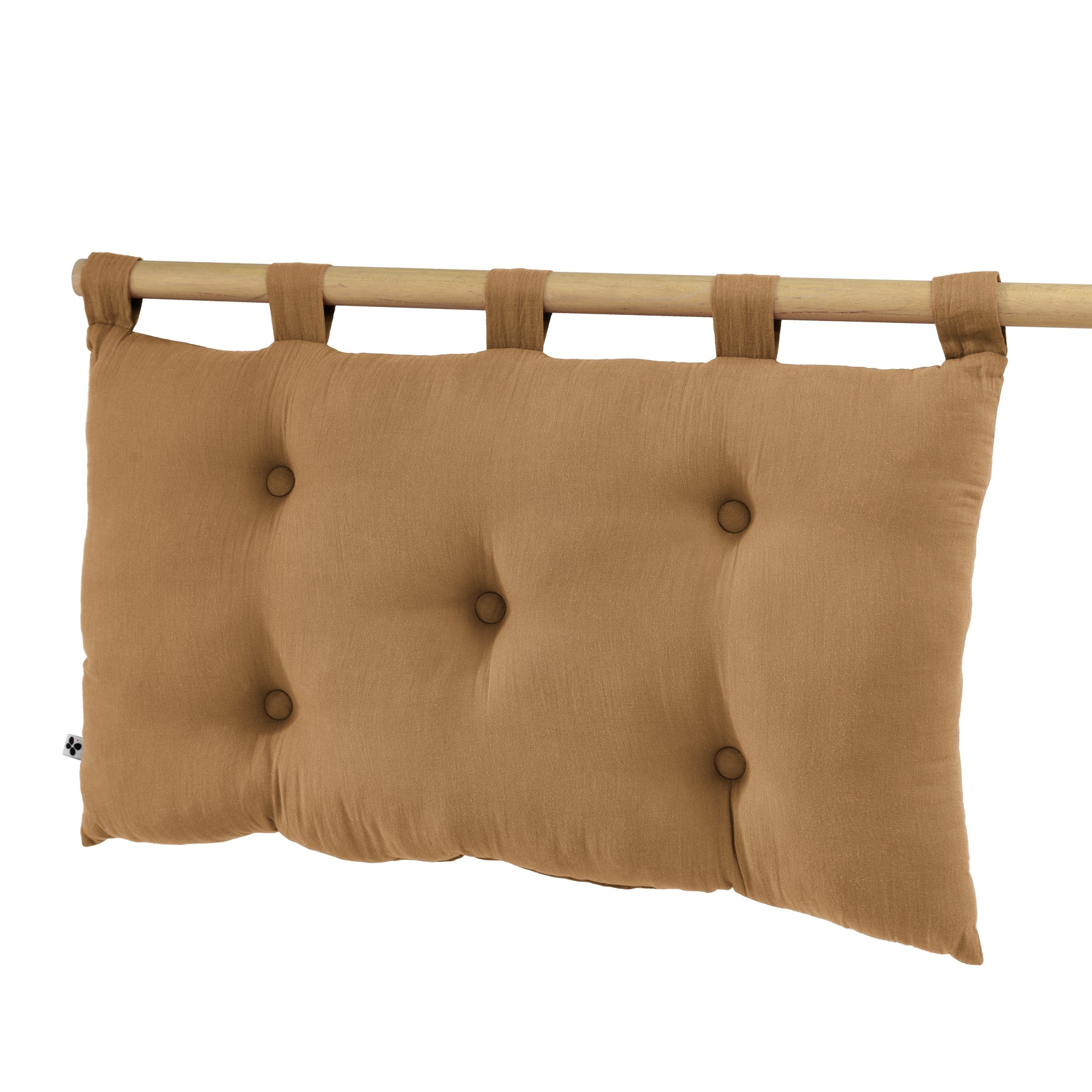 Tête de lit 5 boutons avec passants – 50 x 80 cm – Gaze de coton Gaïa Camel